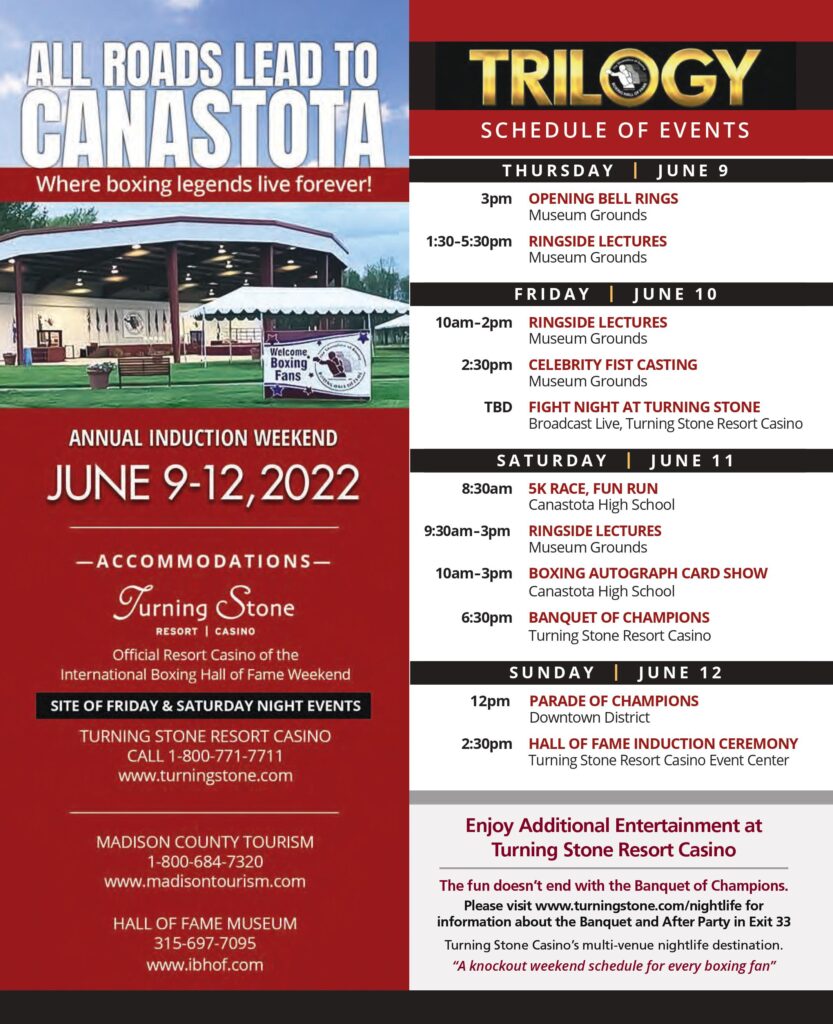 CANASTOTA, NY – After a two-year absence, the International Boxing Hall of Fame is hosting its Induction Weekend “Trilogy” June 9-12 in the Village of Canastota.