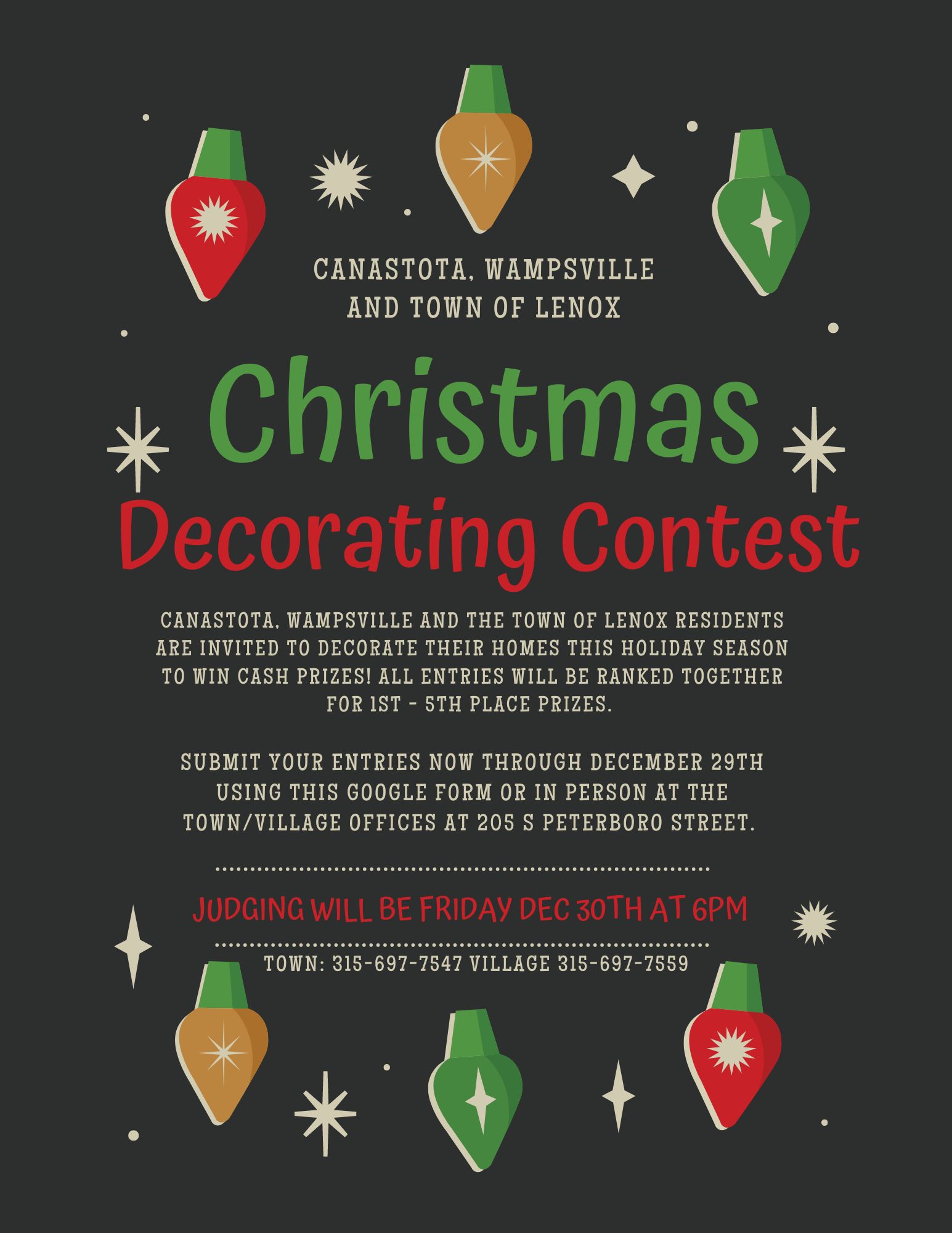 Canastota, Wampsville and Town of Lenox residents are invited to decorate their homes this holiday season to win cash prizes!