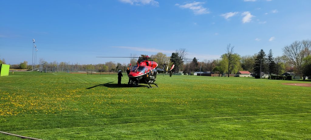 Members of the Canastota Central School District, Students Against Destructive Decisions, the Canastota Fire Department, Canastota Police Department, Wampsville Fire Department, Lincoln Fire Department, Greater Lenox Ambulance Service, and Mercy Flight organized and participated in the event. Students witnessed firsthand the efforts first responders go through to rescue victims of a car crash – from the initial fire siren to a helicopter medevac. Canastota students played the roles of the victims, including the driver who “caused” the crash and was “arrested” by police officers after a field sobriety test.
