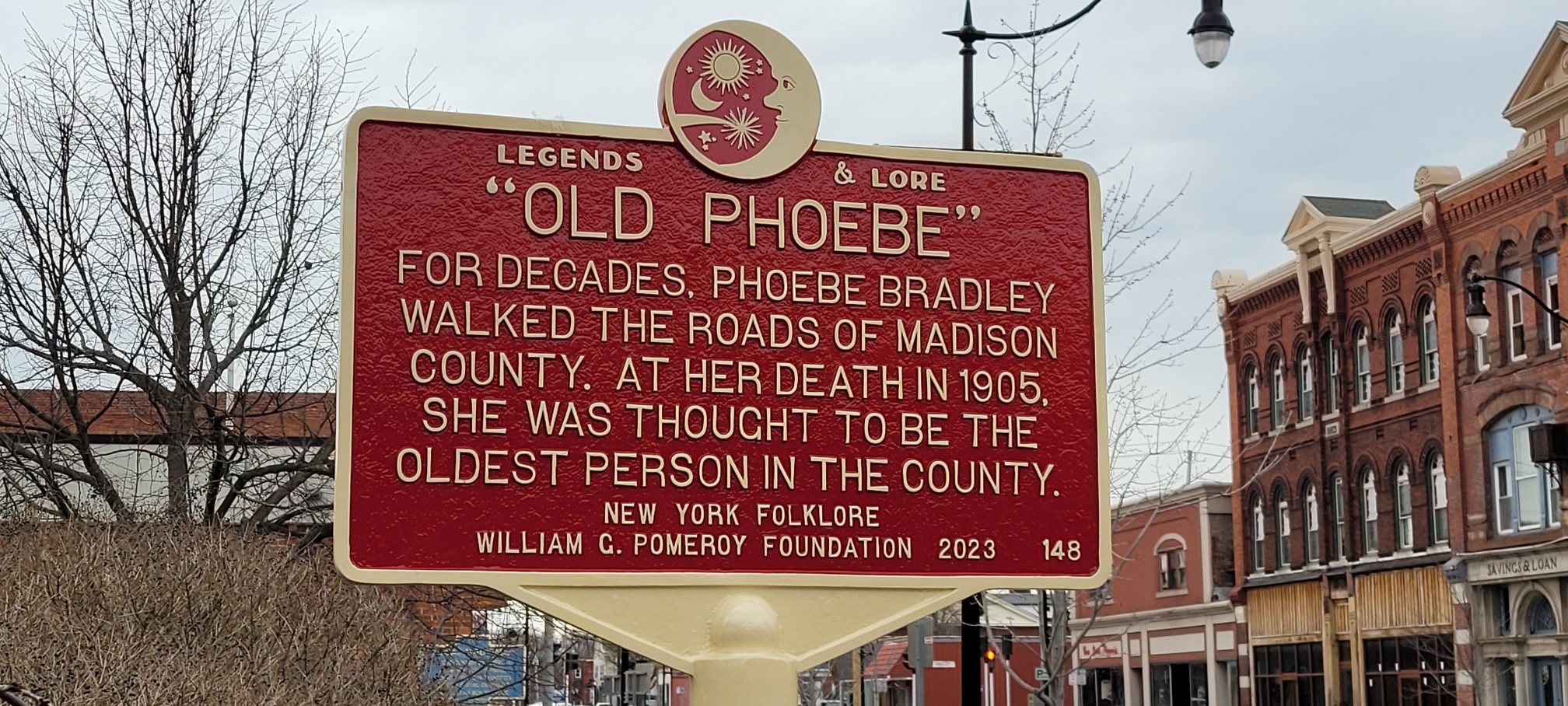 The marker, which is located on the corner of Peterboro Street and Railroad Street next to the municipal building, celebrates the legend of Phoebe Bradley. Village Historian David Sadler researched the legend and worked to obtain the marker on behalf of the village. Sadler spoke at the ceremony and offered some background on Old Phoebe. Here is the text of his remarks: