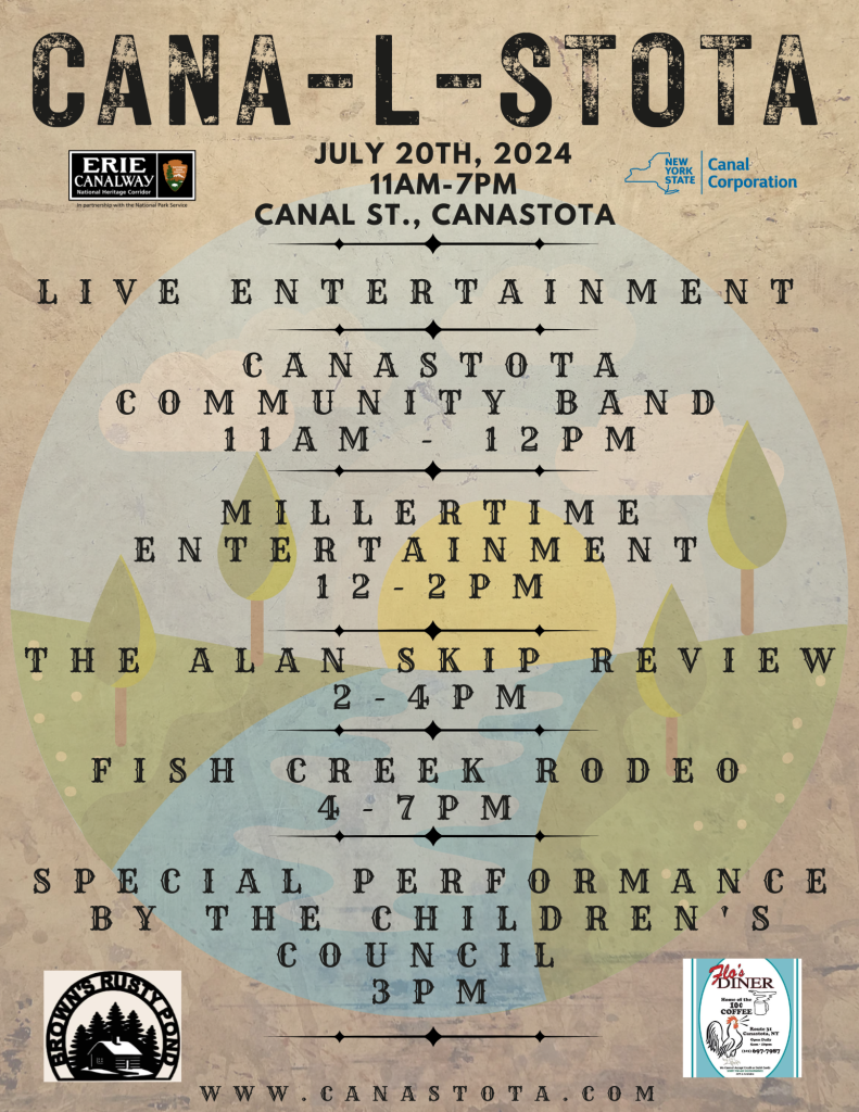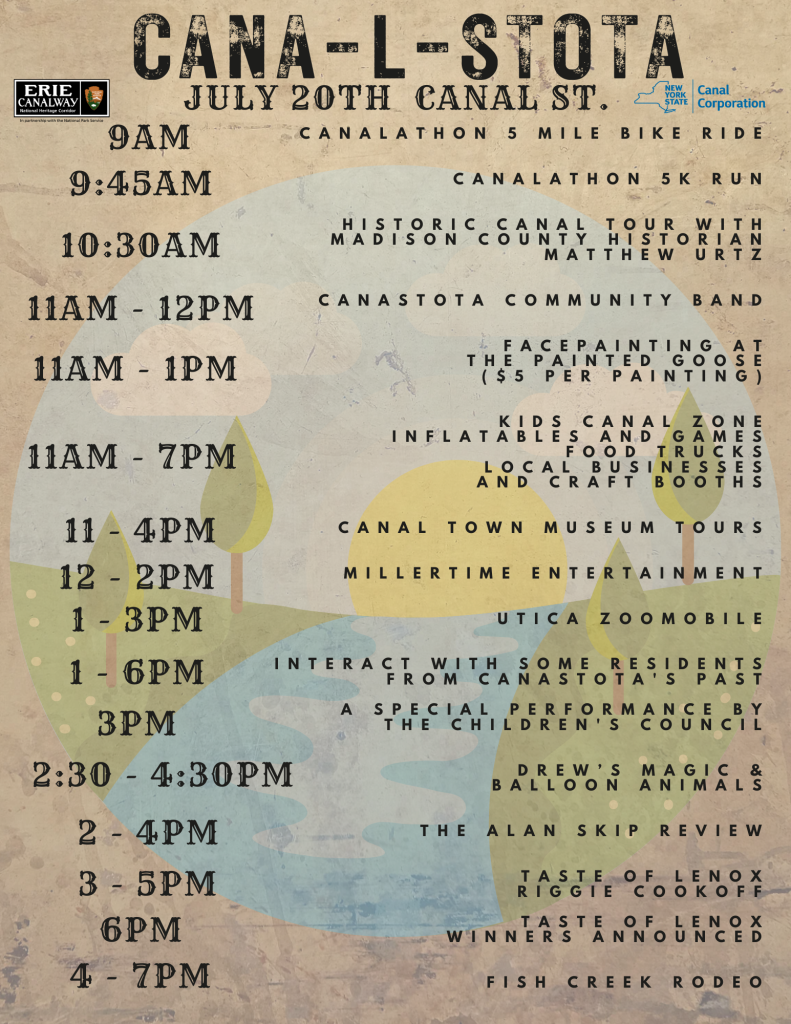 The Village of Canastota Recreation Commission is thrilled to announce Cana-l-stota, a new event made possible by a NYS Canal System Event Grant, the NYS Canal Corporation and the Erie Canalway National Heritage Corridor.