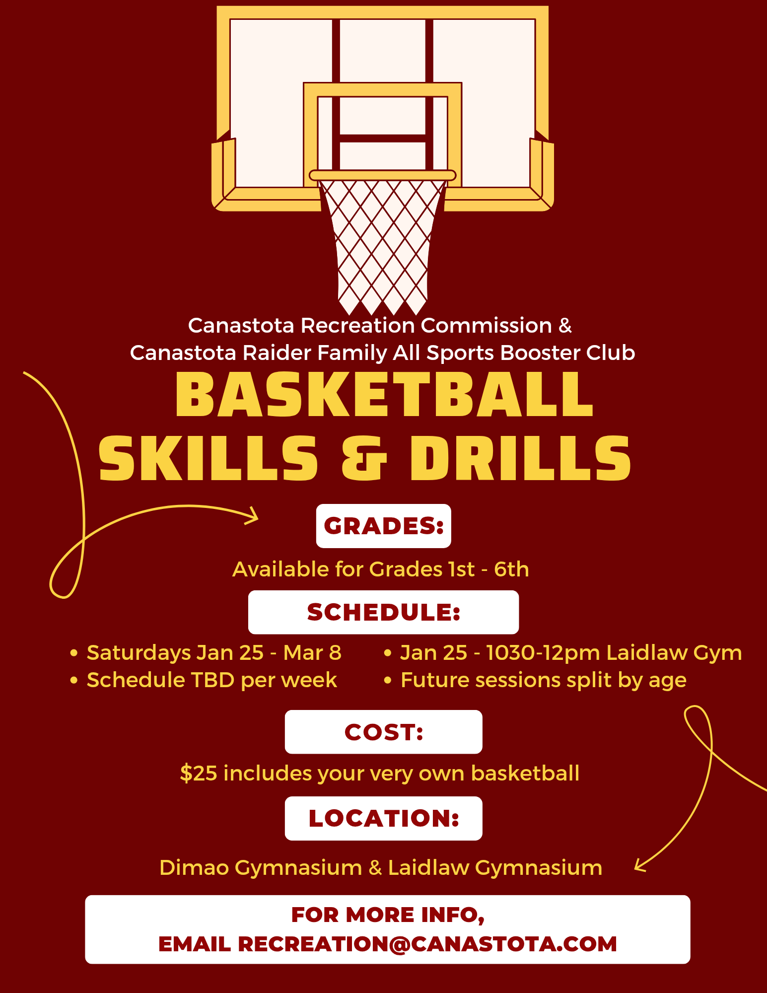 The Canastota Recreation Commission and Canastota Raider Family All Sports Booster Club present the annual youth basketball skills and drills clinics.