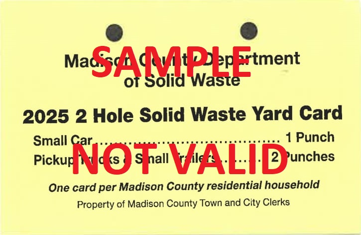 The Canastota village office (through the Town of Lenox) has a received a supply of yard waste punch cards from Madison County Solid Waste & Recycling, which can be used at the county’s transfer stations.